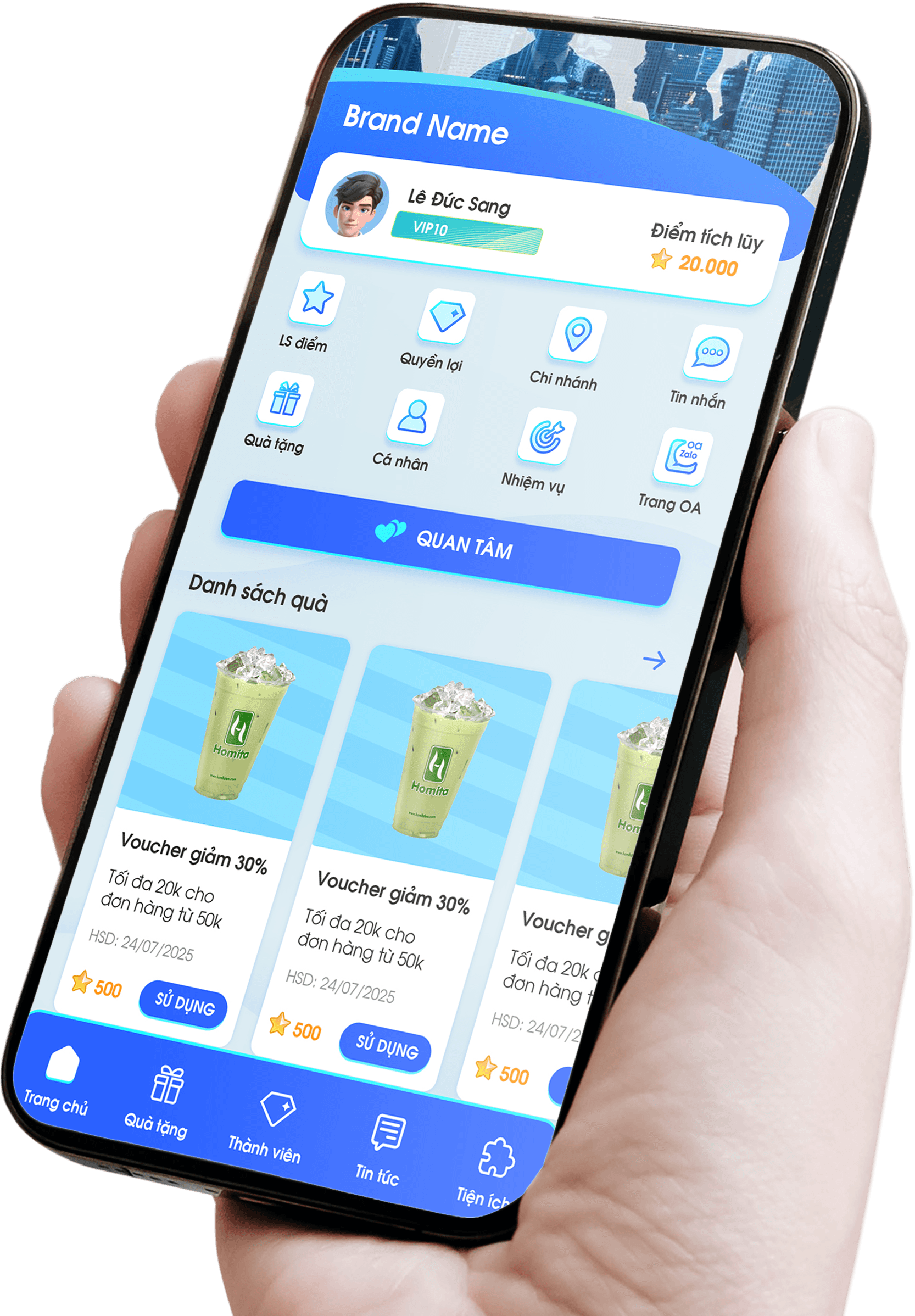 Khách vào quán giờ không thích cầm thẻ tích điểm giấy nữa. Từ lúc có cái thẻ thành viên trên Zalo, khách hào hứng tích điểm để nâng hạng lắm. Thấy quán mình hiện đại, khách cũng tin tưởng giới thiệu bạn bè nhiều hơn
