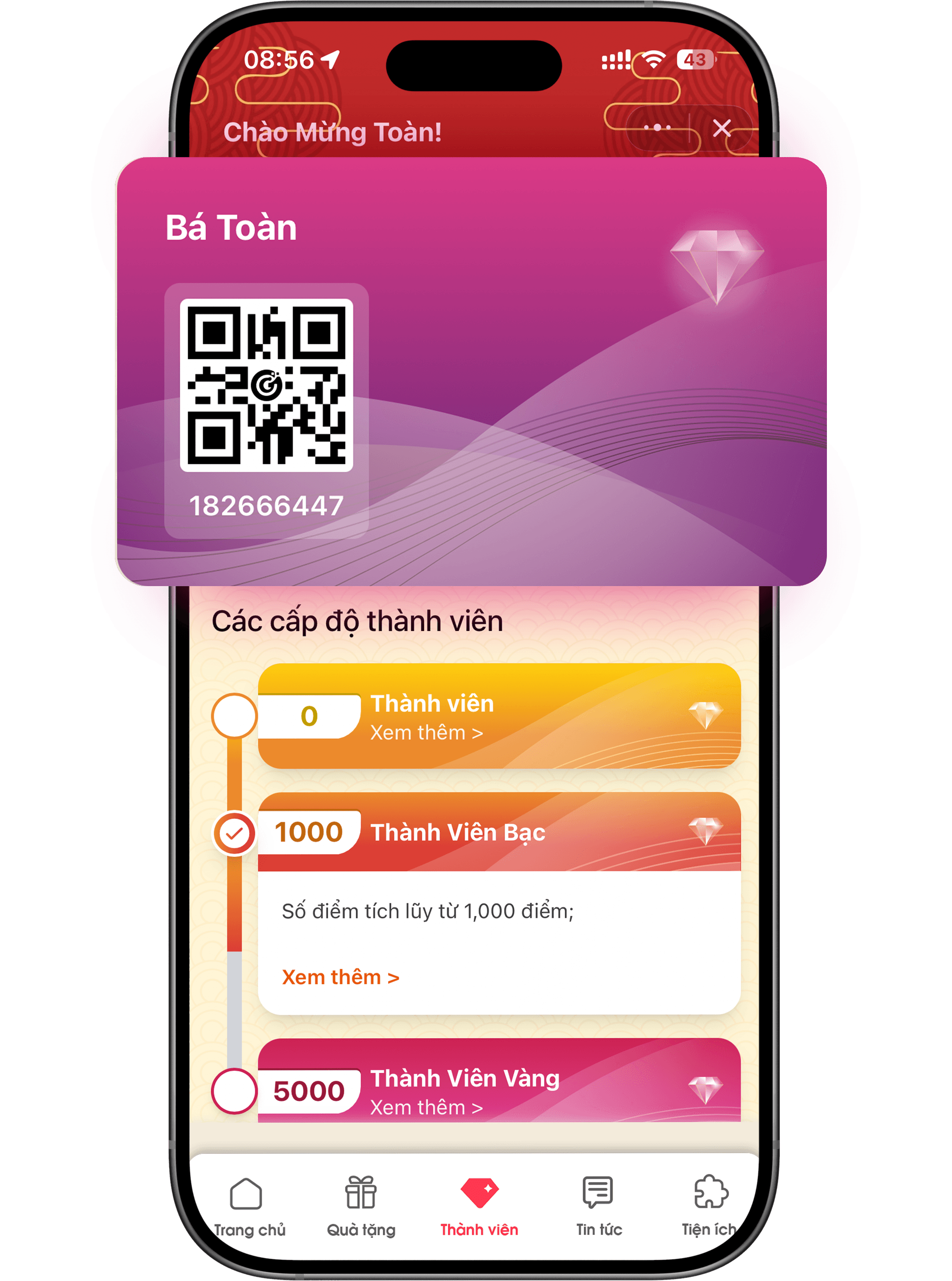 Khách có thẻ thành viên ngay trên Zalo. Quét QR để định danh và tích điểm tự động