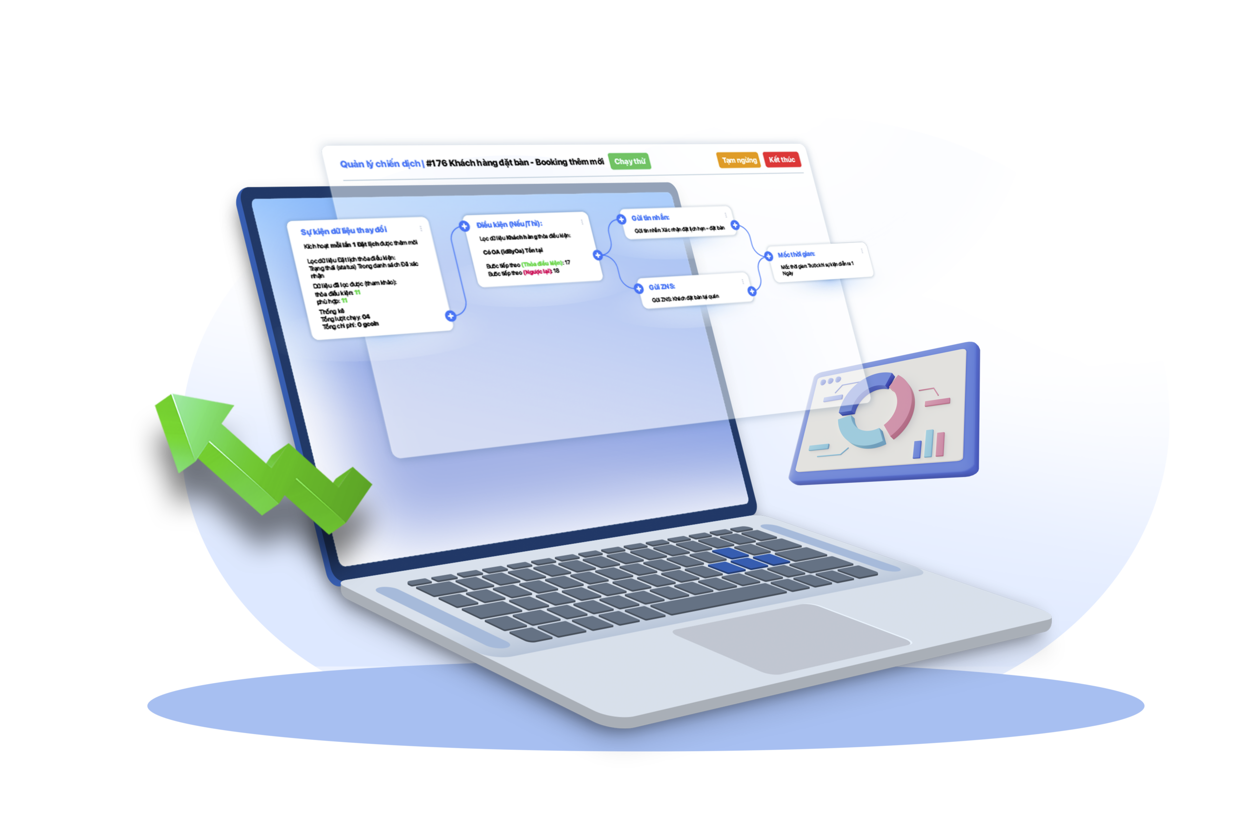 Thiết lập “Automation”: tự động hóa quy trình chăm sóc khách hàng, gửi thông báo định kỳ, kích hoạt khuyến mãi, nhắc lịch hẹn, phân loại khách theo hành vi…Giúp trò chơi thêm thú vị mà lại dễ quản lý